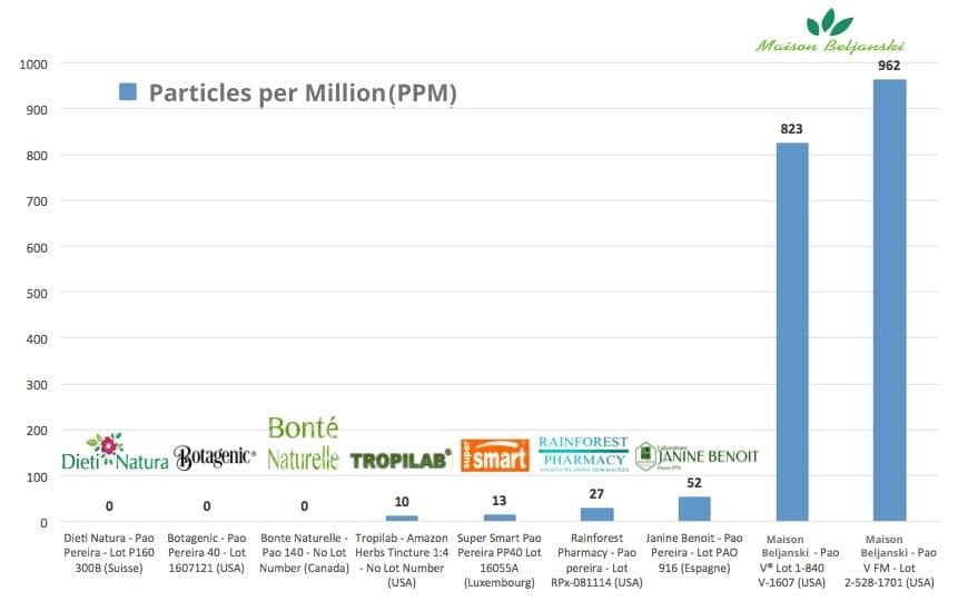 A comparative study of Pao Pereira conducted by The Beljanski Foundation showed that the concentration of this alkaloid can vary dramatically from one preparation to another.