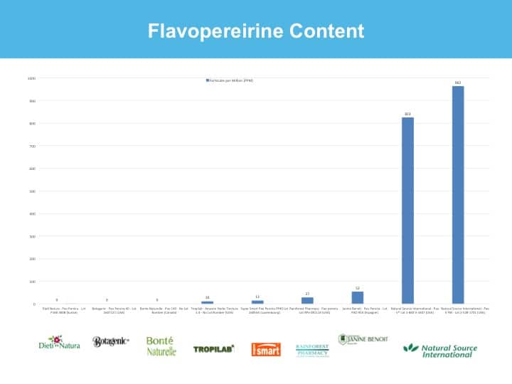 At The Beljanski Foundation, we want to use only the highest concentration of Pao pereira. That is why an independent lab conducted an analysis of other Pao pereira products and their concentration of Flavopereirine (the key alkaloid in Pao pereira).